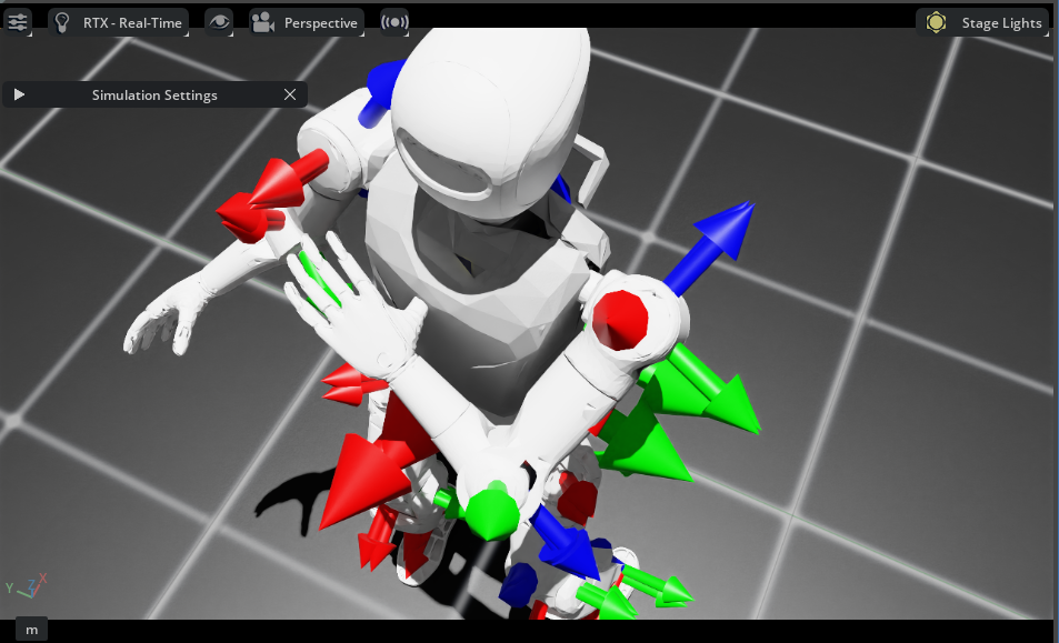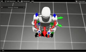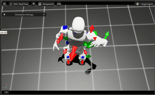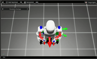 左图中手指和身体发生碰撞;右边图中由于碰撞体尺寸设置过大,可以看到碰撞体间有相互作用力箭头。为了能够直观查看训练出的模型是否存在碰撞问题,应该减小碰撞体尺寸,通过模型穿模反映碰撞,如左边图所示。